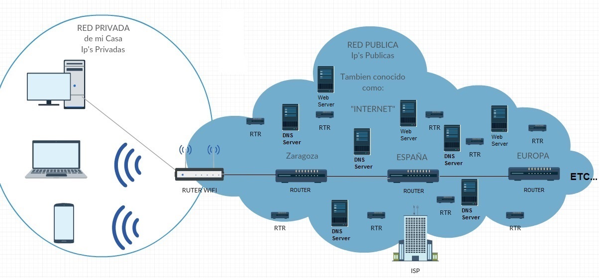 Las direcciones ip's son limitadas, por lo que se han dividido en rangos de uso público (accesibles desde internet) y rangos privados (usadas dentro de las redes de area local).